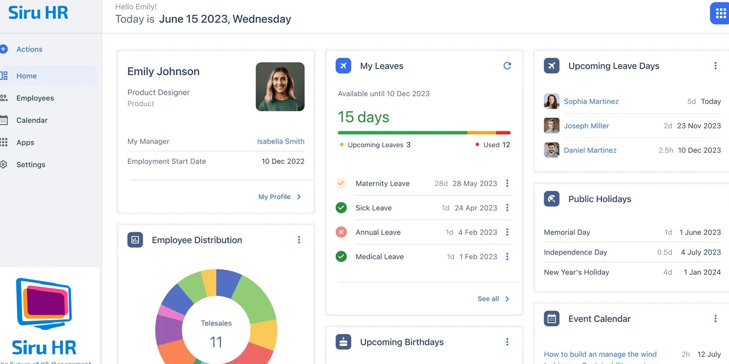 We offer an all-in-one suite of HR tools that streamline processes like employee management, recruitment, performance tracking, and HR analytics. Siru HR's AI-powered job-matching technology sets it apart, which helps businesses quickly and accurately identify the best candidates. The platform is user-friendly, scalable, and cost-effective, enabling businesses to efficiently manage their HR operations while adapting to growth. By automating routine tasks and providing advanced analytics, we empower HR professionals to focus on strategic decision-making and employee development, ultimately enhancing overall business performance. We are offering features such as: * Localized Compliance Management: Automated updates and compliance checks aligned with the latest Dutch labor regulations, including the Wet Arbeidsmarkt in Balans (WAB) and Algemene verordening gegevensbescherming (AVG). * AI-Powered Recruitment and Job Matching: Advanced AI matching based on skills, experience, and career goals, with recommendations for skill gap training. * Employee Performance Tracking and HR Analytics: Centralized management of employee records, payroll, time tracking, benefits, and performance evaluations. * Integrated Learning & Development: Personalized learning recommendations for skill growth and career progression. * Employee Well-Being Analytics: Tools to track employee sentiment and support engagement, mental health, and burnout prevention.